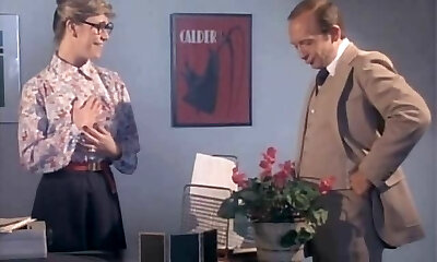 Brunette college girl in glasses seduced by her horny aged teacher