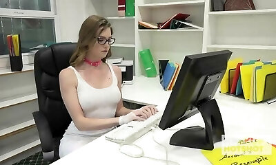 Horny boss enjoys fucking pussy of Shona River pulling her panties aside
