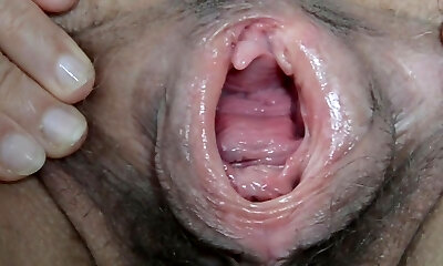 Guy opens up ladies pussy lips wide and sticks his tongue deep then ravages