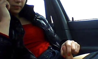 Ugly ample bitch jerks off dick in the car