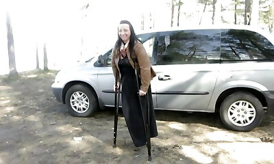 homemade, older chinese lady wanks cock in van