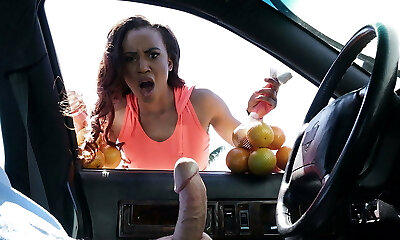 Picked up brunette woman has no shame and joyfully bj's dick in car