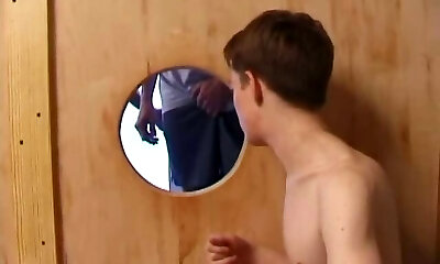 Seductive gal sucking weenie at gloryhole gets slime shower