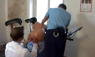 Doc inserts butt-plug into pretty c-cup blonde's lubed twat