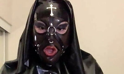 # asian rubber nun latex fetish doll strokes cock #